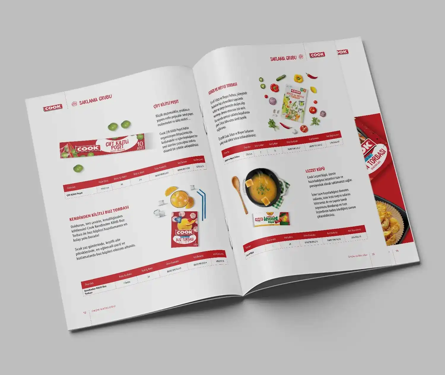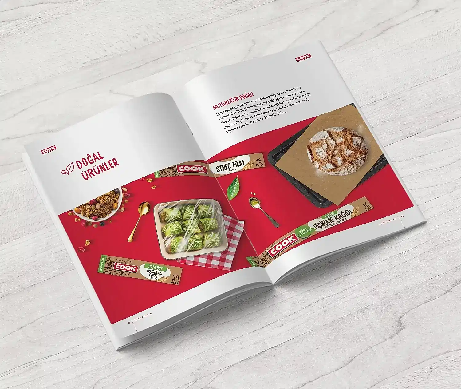 Cook için hazırladığımız katalogta, markanın mutfakta sunduğu pratik ve çözüm odaklı yaklaşımı tasarımın merkezine aldık.